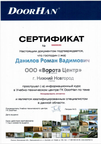 - официального представительства ГК DoorHan в Нижнем Новгороде и области.
